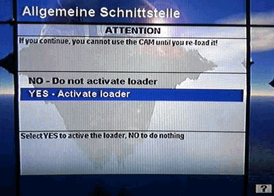 without a card into the receiver and select the module via the CI menu. Select "Prepare for loading" and "YES - activate loader" Now the CI menu should show "DREAM LOAD" In order to bring the module back into the Upload mode, it must get three times a RESET without map. (receiver on out on out on out on - or 3 times CAM-reset) |
