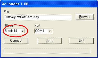Downloading Key File1.Select the Key file(SoftCamkey.hex) and set the block field to Block14 -it is very important not to mistake this as a it can destroy the cam.